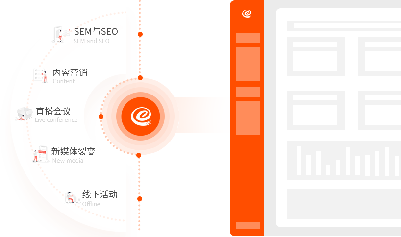 集成搜索引擎SEM、SEO、內(nèi)容營(yíng)銷、直播、新媒體裂變、線下活動(dòng)等營(yíng)銷工具,助力企業(yè)大數(shù)據(jù)獲客;